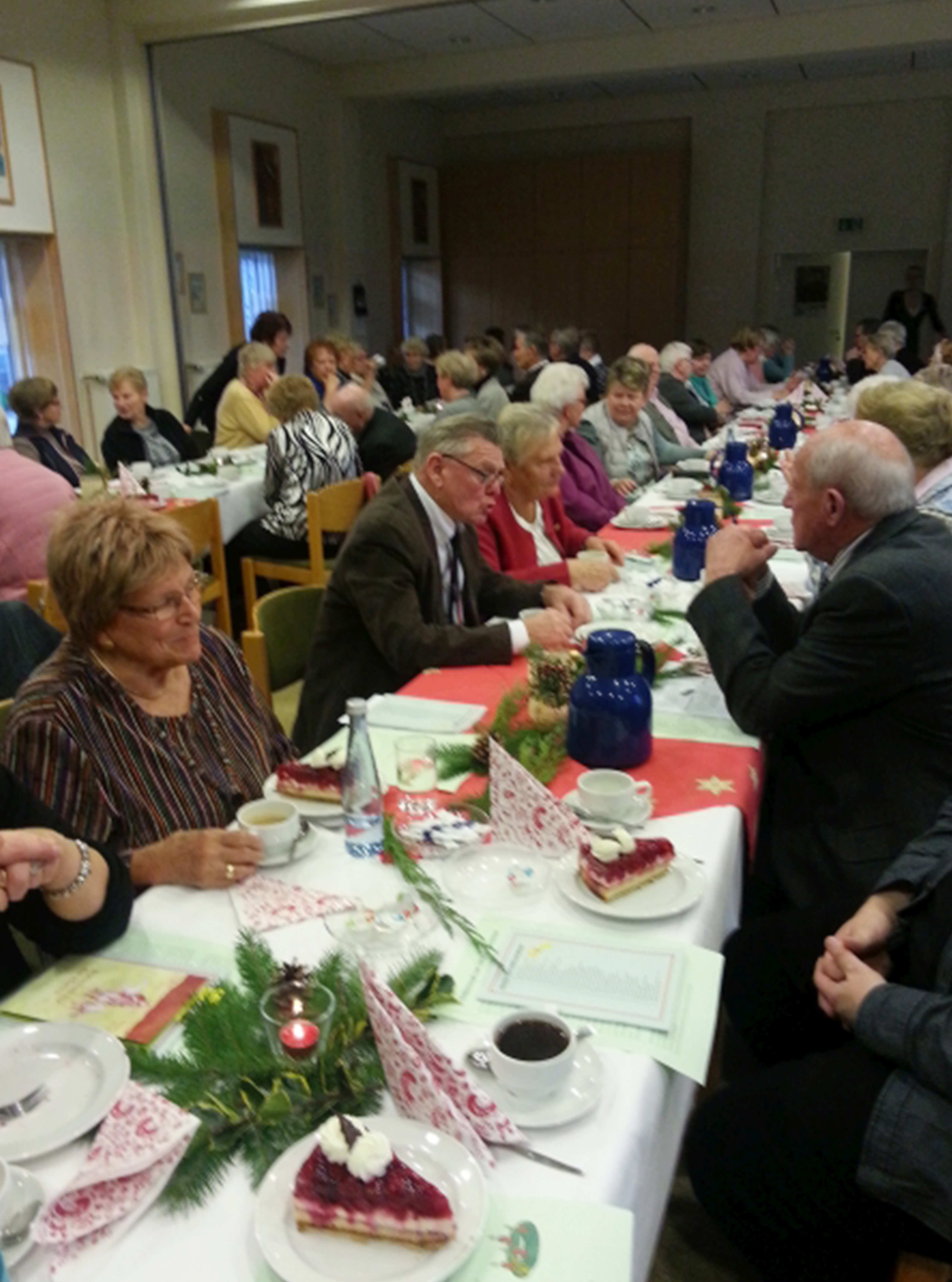 In jedem Advent lädt die Gemeinde Seniorinnen und Senioren zu Adventfeiern ein. In vorweihnachtlicher Atmosphäre gibt es Kaffee und Kuchen, Lieder und Gedichte, Zeit zum Erzählen und Vorfreuen.